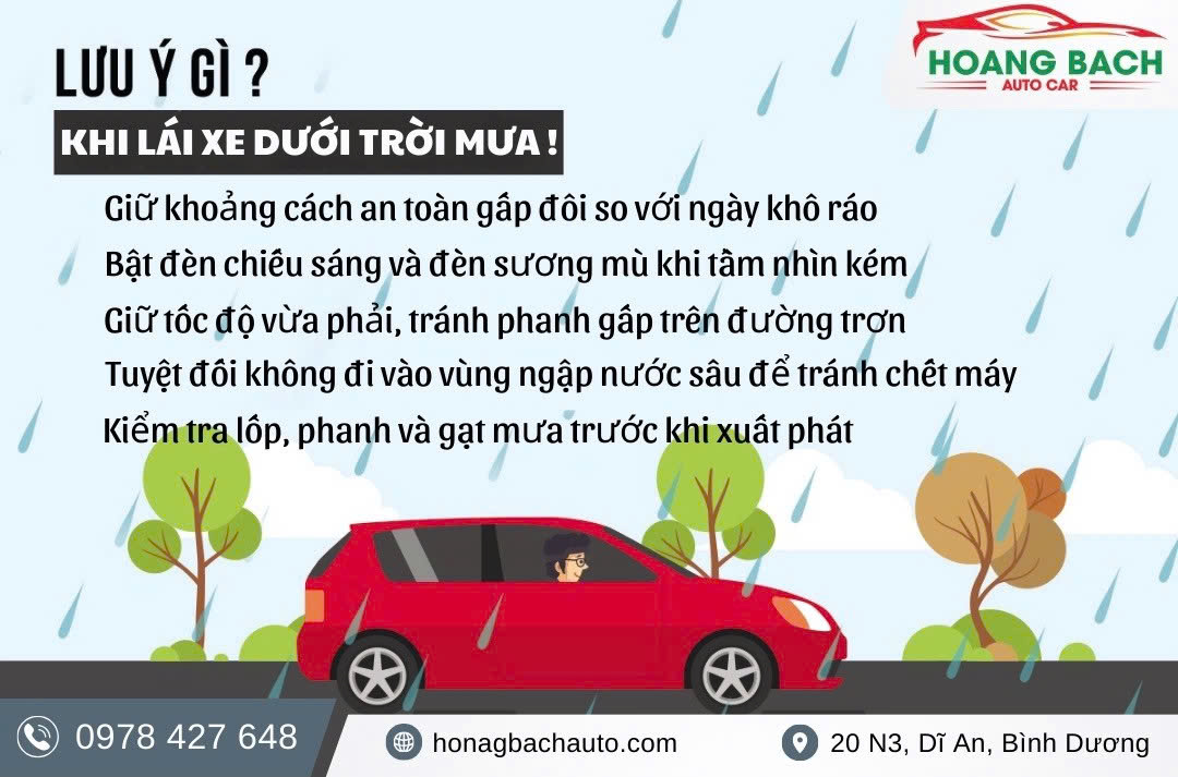 5 tips lái xe an toàn mùa mưa từ Công Ty Hoàng Bách Auto giúp bạn hạn chế rủi ro, kiểm soát tình huống tốt hơn và an tâm trên mọi hành trình.