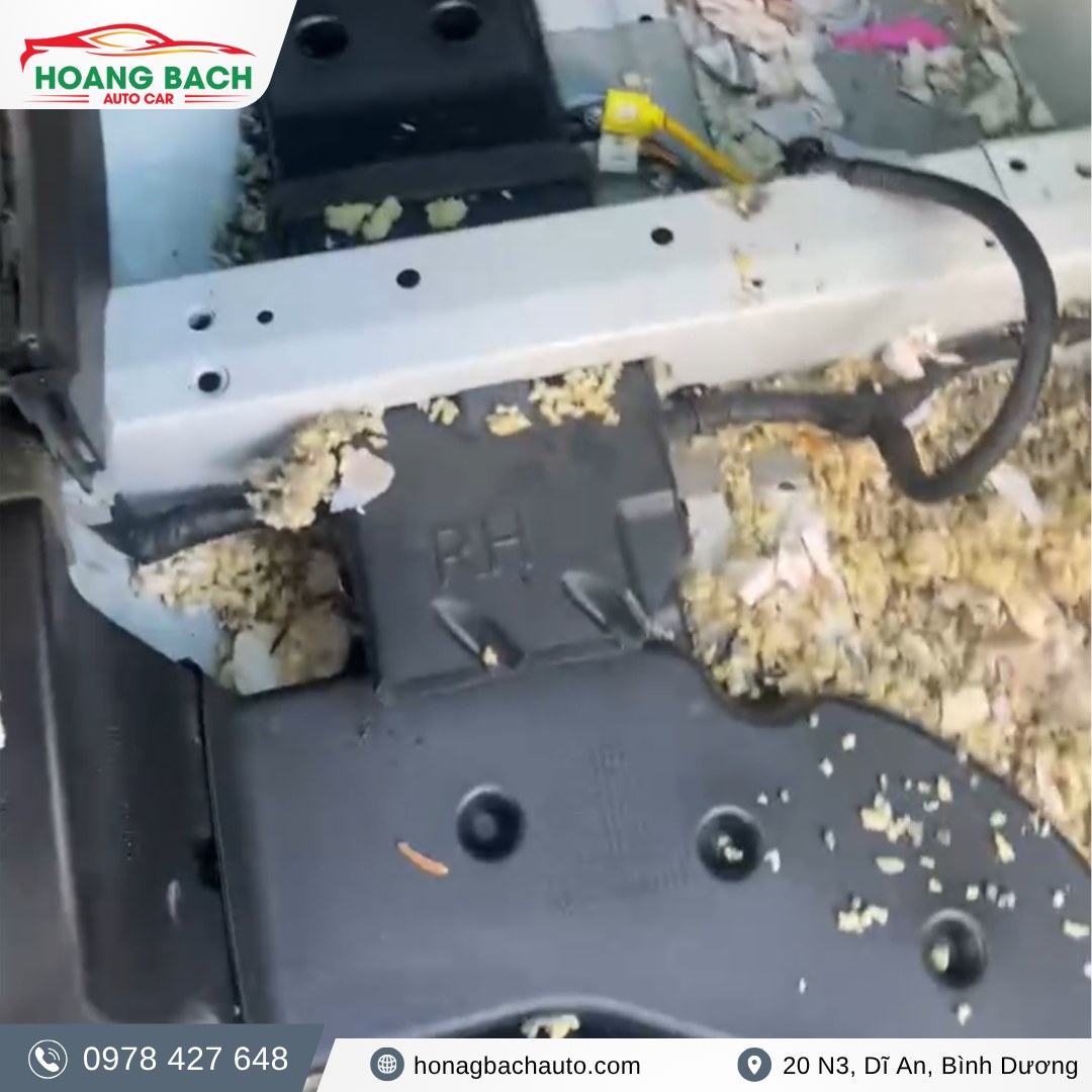 - Phát hiện phân chuột, rác, lá khô trong khoang động cơ